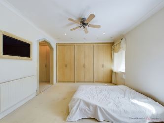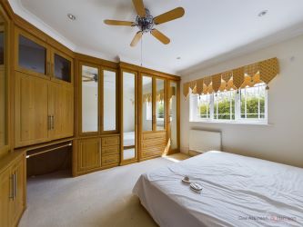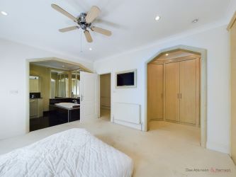 With an en-suite dressing room fitted with an extensive range of wardrobes. Radiator and inset TV.