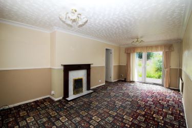 Lounge - 3.34 x 5.87 - A large dual aspect living room with front facing double glazed window and double glazed double doors giving access to decking in the rear garden. The room has two radiators, coving to the ceiling and a living flame gas fire with fireplace.
