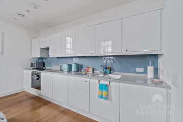 ACCOMMODATION A large and inviting communal lobby gives access to the apartment. The accommodation comprises of an entrance hall with a storage cupboard housing the gas boiler, a light and bright open plan kitchen and sitting area incorporating the kitchen into the living space and is complete with high quality roll edge worksurfaces, integrated dishwasher, fridge, hob and oven. There are two double bedrooms both with fitted sliding door wardrobes and the master bedroom benefits from direct access onto the parking area via French doors. There is a large utility cupboard housing white goods. The modern bathroom is fully tiled with a bath and rainforest shower, WC, heated towel rail and a wash hand basin. The apartment comes with one double length parking space, providing allocated parking for 2 cars.