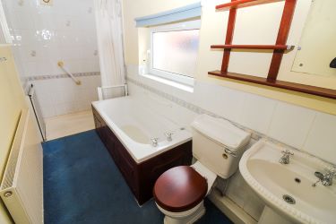 Bathroom - 1.50 x 3.78. A spacious bathroom with a four piece suite comprising a shower cubicle with electric shower , bath, wash basin and toilet. The room has a radiator , extractor and a side facing double glazed window.